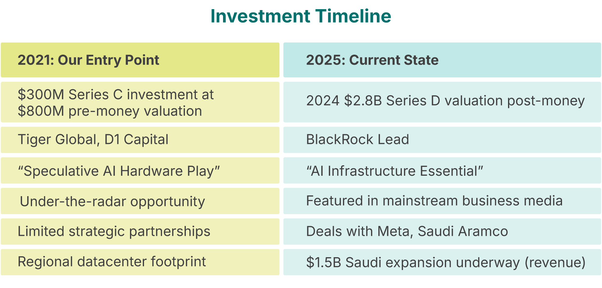 Each of these transitions has expanded Groq’s valuation, with our investors benefiting from positioning at the Series C and D stages — the ideal balance of derisked technology with tremendous growth ahead.